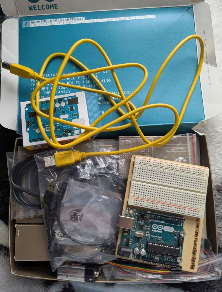 Besides that I did get to visit an out of the way thrift store that I only go to about once a year. I was helping my neighbor take junk to the Eco-Center (a recycling center run by the city) and we stopped on the way back. I enjoy this particular thrift store but the prices of everything had gone up (Quelle Surprise!). They did not have much I needed but as I was at the cash to checkout I happened to notice a cardboard box on the shelf behind the register that said “Arduno” $15. I’m quite sure the cashier had no idea what it was when I asked to see it and as I opened the plain brown otherwise unmarked cardboard box I immediately added it to my purchase. So what did I get for $15?