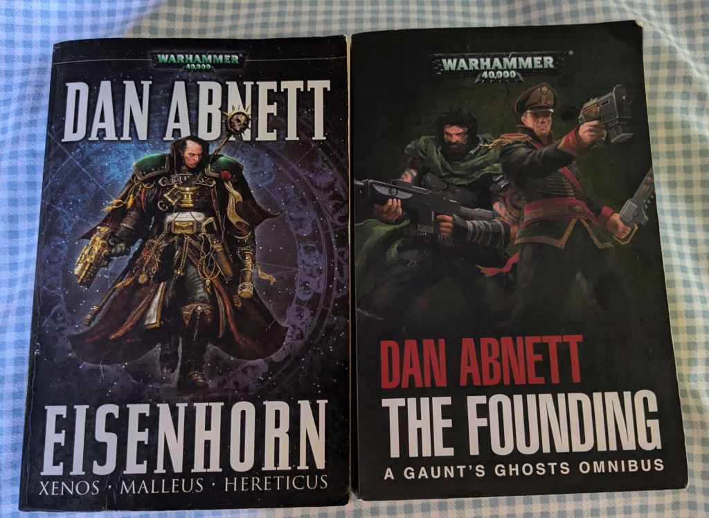 It may seem dire but because of these issues I do get a lot of reading done during this time which is something I enjoy immensely and frankly don’t do enough of during the rest of the year. So far I’ve read 6 books this summer all by Dan Abnett. They are: The Founding – A Gaunt’s Ghosts omnibus (which collects the novels First and Only, Ghostmaker and Necropolis) and Eisenhorn – The Omnibus (which collects the novels Xenos, Malleus and Heretic.).