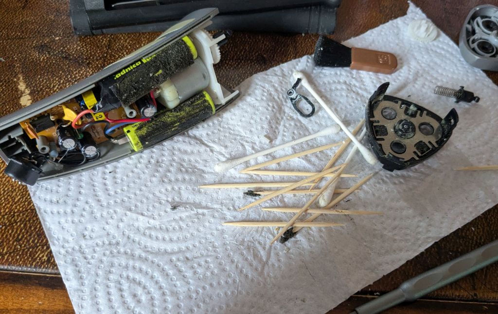 My electric razor broke at the beginning of the month. I had written about buying it at a thrift store back in December 2024 (HERE). It was a Remington Titanium R450 and I had been using it a little under a year. I had hoped that the blades would dull so I could test whether it was possible to hone them to get more life out of the shave head but alas it was not to be. One of the posts that held a gear to one of the 3 rotary mechanisms broke.