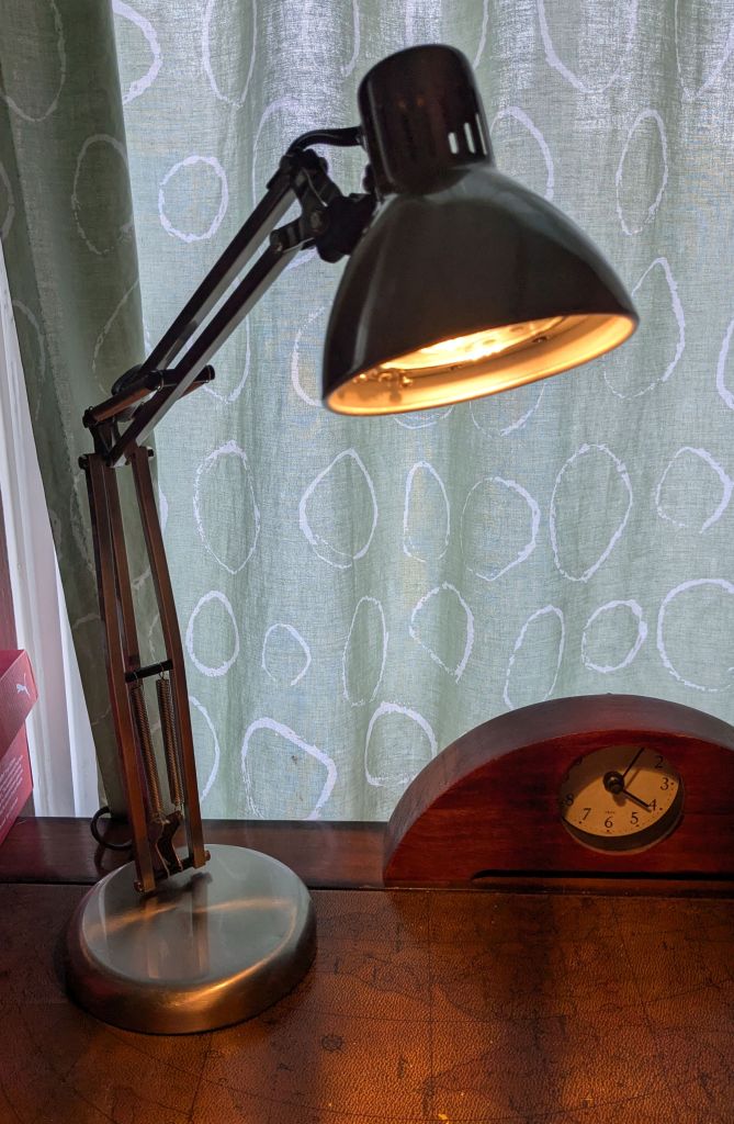 I found an articulated desk lamp in the trash earlier this month. It’s one of those desk lamps with a swing arm that you can put into almost any position. It looks like one of those Pixar lamps they always have in their opening animations on movies. Anyway, it had a halogen bulb in it that had burnt out and I replaced it with an LED version since it will run at 3W vs halogen at 20W with the same or better light output. It was more expensive per unit than ordering a 10 pack of halogen bulbs but I figured I will make it up with the energy savings over time. It’s actually very convenient that I found a lamp because now that I’ve taken out the AC for the year I have my workspace back and the old lamp I had on the desk has been moved to another part of the house so I had nothing to replace it with.
