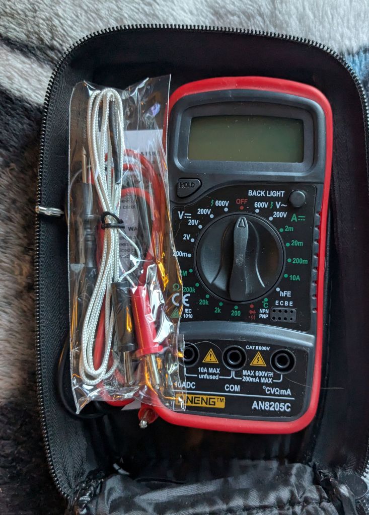 The second tool I bought was a thrift store find. It was a small Klein branded zip bag for $1. With further investigation it turned out to be a multimeter bag that sells for $20-$25 at places like Amazon and Home Depot. Klein is a well know manufacturer of electrical tools but I don’t own anything from them. I did the next best thing though and put my cheapo oriental multimeter in it. In the reviews of the bag on Amazon there were lots of pictures of people putting their expensive Klein or Fluke branded multimeters in it. A younger me would have uploaded my blasphemous pictures to fuck with people but I’m far too old for that shit now.