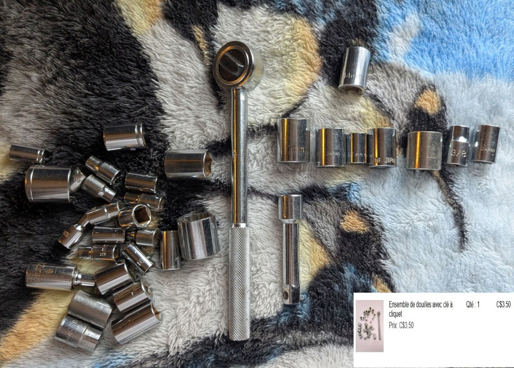 The fourth and fifth tools I bought was two sets of Japanese/Taiwanese unbranded ratchets from the same thrift store. It looks like all the pieces were basically just thrown into bags to sell because I saw sockets from Powerbilt and Crescent in there as well (some of which don’t even fit the ratchets). The ratchets need to be serviced and the rust removed from some of the sockets but I think for $7.00 I could have done worst.
