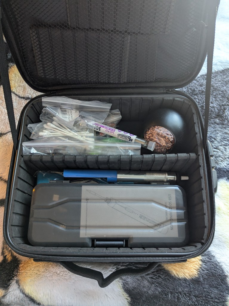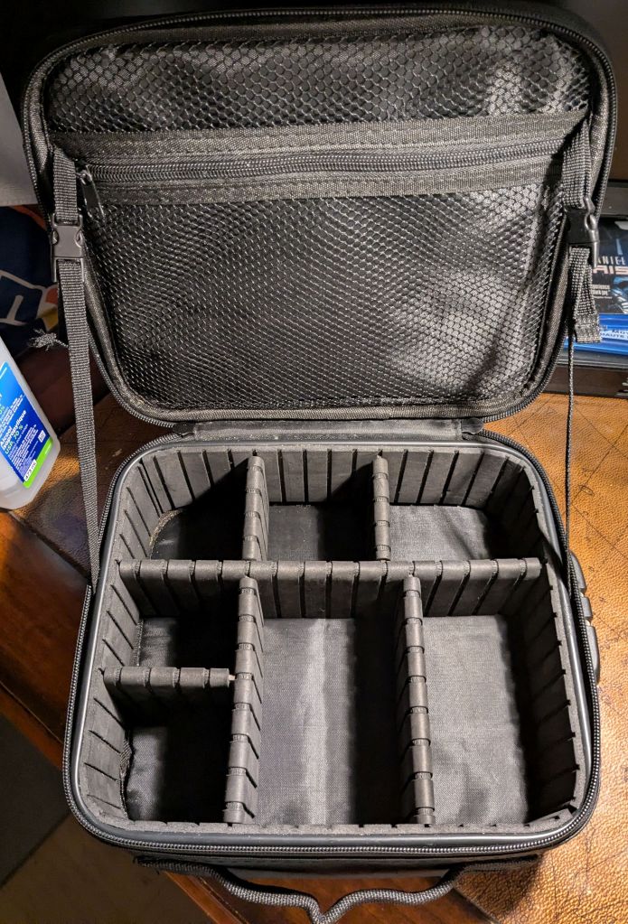 It’s basically a zippered bag with adjustable walls to fit whatever. I’ve seen them advertised as “Stash Box”, travel case or makeup case but for my purpose it’s going to hold all my soldering stuff.
