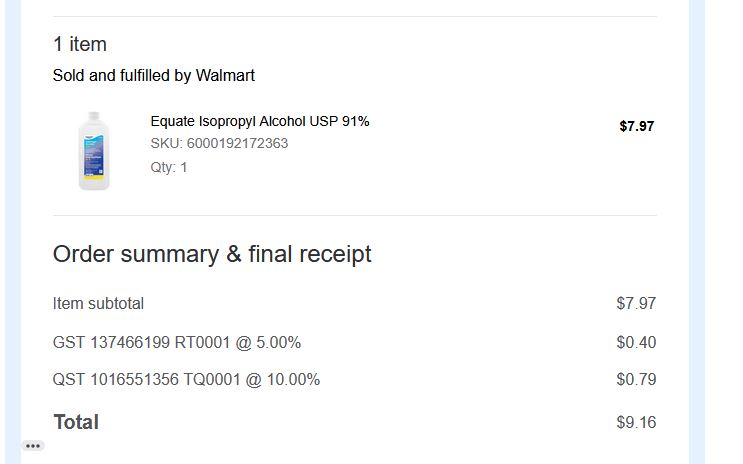 4. 946ml of 91% Isopropyl alcohol $9.16