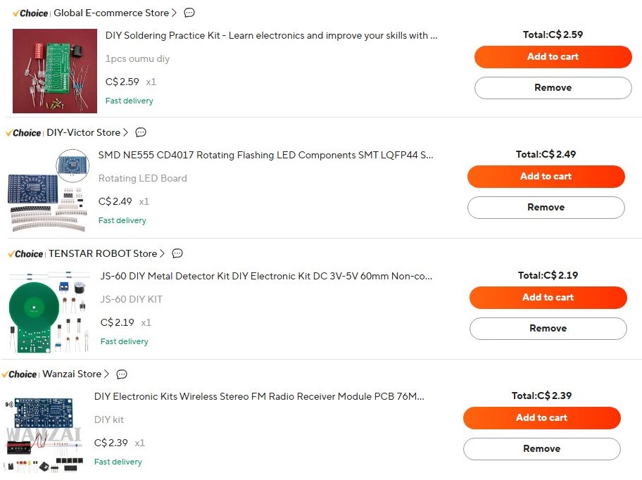 The seventh things I bought were 4 practice soldering kits from Aliexpress for $9.66. The whole beginning of this project was to learn how to solder and so far that’s been an epic fail. I’m hoping these kits will give me the push I need to actually get some practice in.