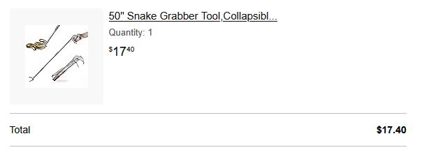 The last two things I bought this month were to help me with my canning. I bought a “snake grabber” which is really just an extra long trash picker to help me get stuff from the very bottom/back of dumpsters. I got it on Amazon and it cost me $17.40. It cost me a bit more but it’s all metal thankfully and should hold up better than other plastic grabbers. With this in mind I also bought a silicon tie from Wal-Mart for $3.45 so I can wrap the grabber after I’m done using it since it folds down into 3 pieces.
