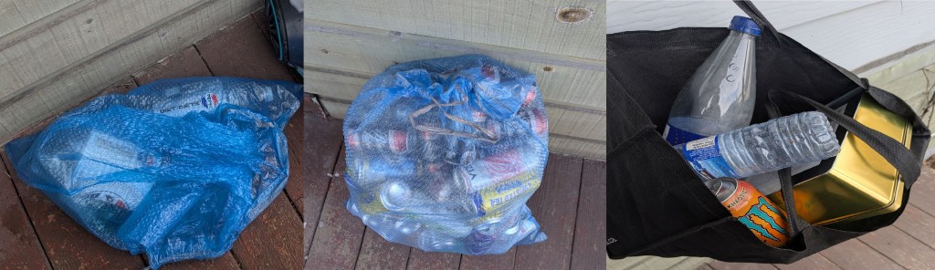 Since I have no money available right now, can’t get a second job and don’t want to take on any more debt it leaves me with scavenging. I took to the streets during errands to start collecting cans and/or trash that I could resell. It’s not glamorous but it’s the only option I have left.