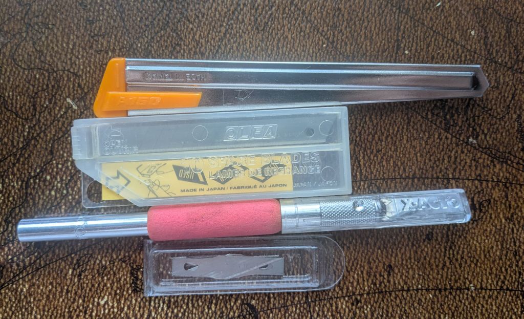 The last thing I found was an OLFA box cutter and an X-Acto knife both with replacement blades in a plastic baggy in the craft section for $1.00. I thought briefly of passing them up because they don’t have a direct use to me right now but they are both good quality brands and I probably will not come across a deal like that again when I eventually find a need for them.
