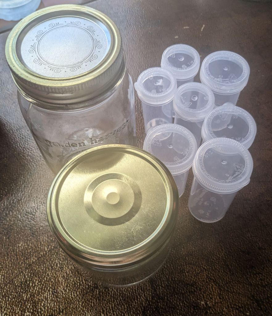 Lastly while scavenging I found storage – a shoe box for my tools, some empty pill containers and mason jars for components. I’ll use this stuff until I can afford something better.