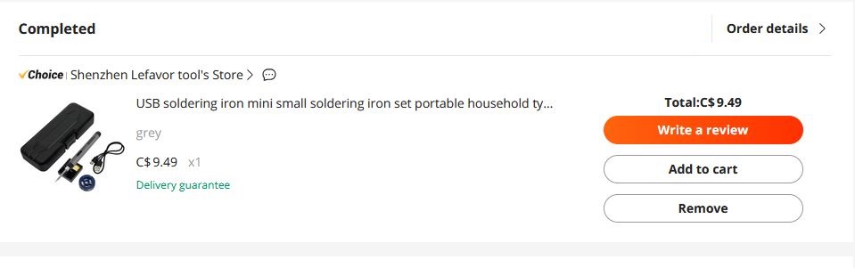 The first thing I purchased was a soldering iron. Due not having a dedicated workspace nor having access to an electrical outlet all the time I decided to go with a battery powered soldering iron purchased from Aliexpress for $9.49.